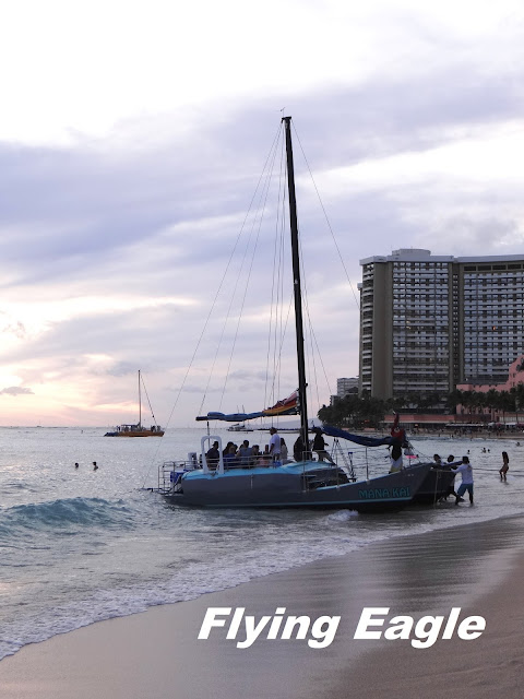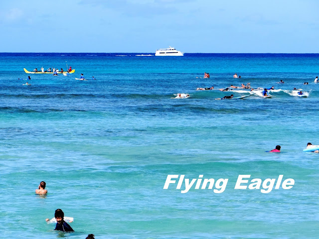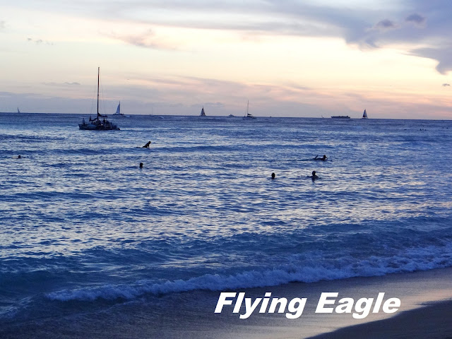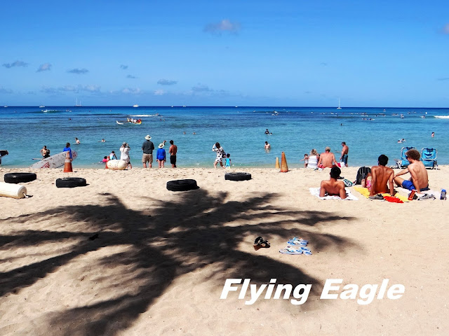 夏威夷四面環海,有不少美麗的海灘,而在眾多海灘之中,威基基海灘更是全球聞名。它位於歐胡島南部,在19世紀時是夏威夷皇室最喜愛的遊樂地方。威基基區內飯店林立,我們下榻的旅店距海灘只有2-3個街口,所以我們數度前往海灘,欣賞它在不同時間和光線下的婀娜風貌。