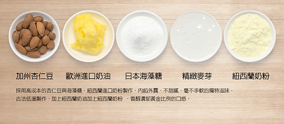 嚴選優質原料與食材, ![]() ![]() 天下無難事,只怕有心人 蔡老闆從事了建築業將進20年,但12年前毅然投入他完全不懂的糕餅業,想像不到50幾歲才考上食品丙級證照的蔡老闆,經過多年摸索,靠的就是那份執著,也克服了許多困難,憑著自己對產品的要求,以及慢慢研發出與市面上不同的產品,開拓市場後,相當受到好評,深獲顧客的肯定。 ![]() 讓蔡老闆慢慢穩固基礎,任何事情都為消費者著想也是成功的主因,全年無休就是希望顧客無時無刻都能品嚐到頂級的糕餅,更希望是希望將酥、脆、綿、柔、細、潤、香、甜的口感完全呈現給客人。 ![]() 用心良苦,只為顧客 老闆已經從事製餅十多年來,顧客對【茶與餅】的產品喜好程度不在話下,鴛鴦餅的製程辛苦,但回饋來的口碑抵擋了所有的辛勞,除了鴛鴦餅外,鳳梨酥、牛軋糖、中西式糕點皆有所研發製作。 ![]() 企業的唯一信念就是天然、健康,對任何產品的研發,都講究對身體健康的訴求,希望讓顧客吃的美味、吃的健康! ![]() 在師傅的培訓上講求達到製餅的專業製程,通過證照的核准檢定,提升【茶與餅】的全方位專業度! ![]() ![]() ![]() 用料上的堅持 茶與餅堅持給您最高級的原物料製作,不買價格低廉的劣質品,食品業是良心事業,一定讓您吃得安心吃得開心。 ![]() 歷年事蹟殊榮獎項 ★2002年榮獲台灣金字招牌獎 ★2003年台中縣政府優良產品肯定 ★2004年榮獲台中市政府優良廠商 ★2005年榮獲彰化縣政府地方產品展縣長感謝狀 ★2006年中秋月餅評鑑金牌獎(鴛鴦餅) ★2009年榮獲十大伴手禮首獎(鳳梨酥、牛札糖) ★2009年獲得優良服務作業規範GSP認証 ★2010年榮獲美滋糕餅金牌評鑑、牛軋糖組金牌獎 ★2010年榮獲美滋糕餅金牌評鑑、鳳梨酥組金牌獎 ★2010年榮獲 鳳梨酥、太陽餅 優良認證標章 ★2010年榮獲台灣雙金牌獎 ★2011年榮獲網路十大人氣好酥 ★2011年榮獲十大伴手禮首獎 ★2011年榮獲台中市衛生局評鑑實在安心優良廠商 ★2012年連續3年榮獲經濟部GSP認證 ★2013年 中國食品博覽會金獎 榮獲 立法院長 頒發 金字招牌獎、台灣雙金牌獎 榮獲 天下第一酥 殊榮 榮獲 十大伴手禮首獎 ![]() ✭【茶與餅】手作牛軋糖✭ ![]() ![]() ✭【茶與餅】核桃糕✭ ![]() ![]() 通過多項檢驗合格認證,讓您每一口美味又安心。 ![]() ![]() 品名:【茶與餅】手作牛軋糖 規格:200g/盒 成分:麥芽、海藻糖、特砂、奶粉、奶油、杏仁豆 保存期限:180天 產地:台灣台中 【茶與餅】手作核桃糕 規格:200g/盒 成分:麥芽、核桃果、砂糖、鹽、棗泥醬、烏豆沙、沙拉油 保存期限:180天 產地:台灣台中 ※因製作/包裝過程繁複,實品規格可能會有些許誤差。 ※爲保持產品最佳風味,開封後請盡速食用完畢。 ※商品圖檔顏色因電腦螢幕設定差異會略有不同,以實際商品顏色為準。 |