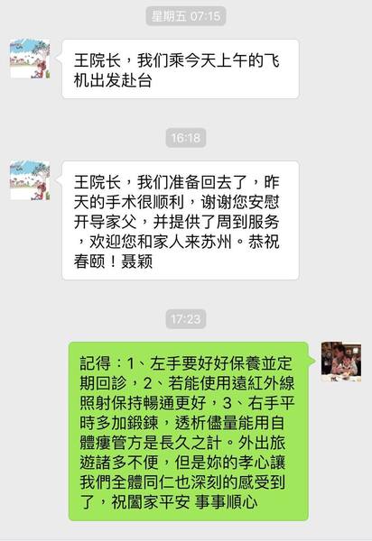 天母 凱硯診所王峰銘醫師 來自大陸的患者家屬衷心感謝