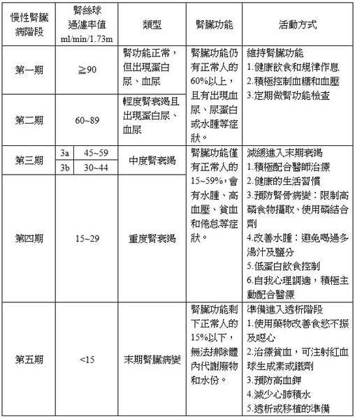 慢性腎臟病可分為五期,是以年齡、性別、血清肌酸酐,