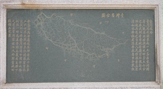 在繽紛的浮雕作品中,有幅台灣省全圖石刻,簡要紀載了台灣史略,也說明了海峽兩岸間難以割捨的關係。