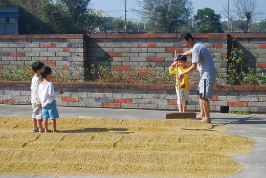 那時每個小孩都要幫忙。稻穀的穀殼上其實有很細的毛,很容易刺激皮膚,尤其是小孩子的皮膚,但有那個小孩子敢不幫忙!?那是找罵挨!!!
