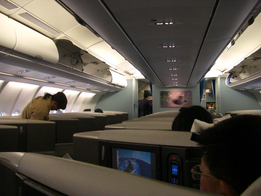 一進到頭等艙空姐就送飲料來了 ... 拿了杯香檳 ... (以後不喝香檳了!苦苦甜甜的跟啤酒不是一樣ㄇ!?)