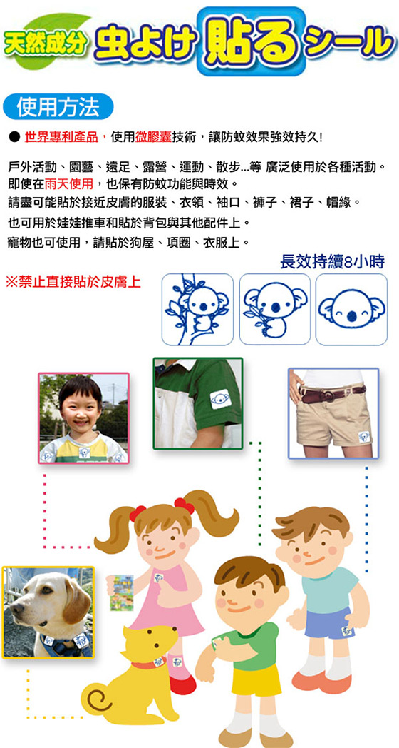 ●採用世界專利微膠囊技術,將驅蚊效果持續8小時