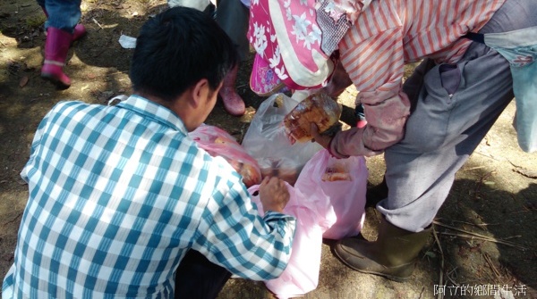 下午一點多,已採完過四分之三,大家集中火力攻頂,邁向茶園最頂端,此時有人高喊有蜂窩,只好放棄最頂端的茶葉,結束了今天的採茶工作。