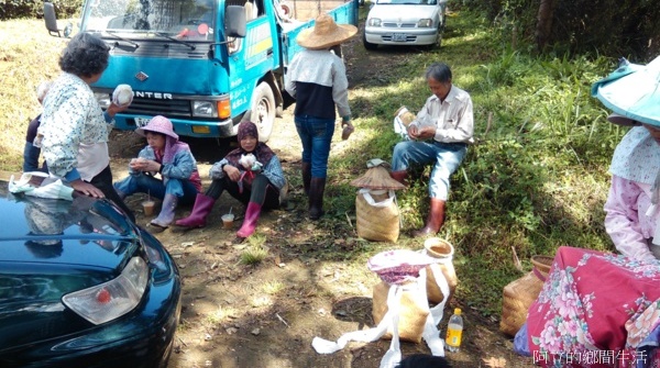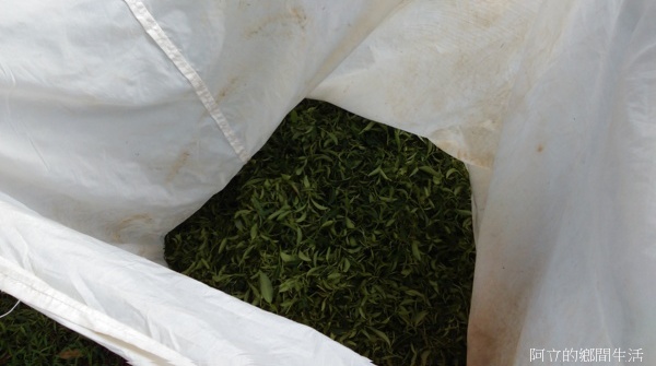 吃飯前順便收集茶葉運回加工廠,目的是先帶回工廠攤開茶葉呼吸走水,這是製茶必經的過程之一,茶葉如果悶壓太久恐怕會有品質不良影響。