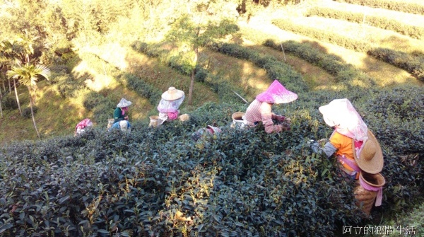 忽然一位採茶姑娘叫了一聲,說有蜜蜂螫到手,原來茶樹內有一個蜂窩,不小心就被攻擊了,大家七嘴八舌的關心起來,有人提議被蜜蜂燈叮到,最好的方法是用尿可以消腫,接著有人說,用誰的尿?有人說我尿很急要不要?還有人說,還好不是叮到肚子,不然肚子會腫起來。大家你一言我一句瞎鬧一番,然後哈哈大笑,至於聽完之後被叮咬的採茶姑娘是如何處置,我也不好意思追問。