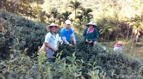 對我這種初次採茶的人,動作慢就罷了,由於左右手分得太開,左手採左邊,右手採右邊,常會漏了中間的,煥哥發現了這個問題,先是提醒我,後來發現提醒無效,便一直幫我補採漏掉的,阿統廠長帶著大布袋開始收集第一批採的茶葉,請人載回加工廠曬茶。這才發現採茶姑娘的快手真不是蓋的,一個茶簍快要裝滿。而我卻一直懷疑我的手放到後面茶簍是不是放偏了,怎麼裝也裝不滿。