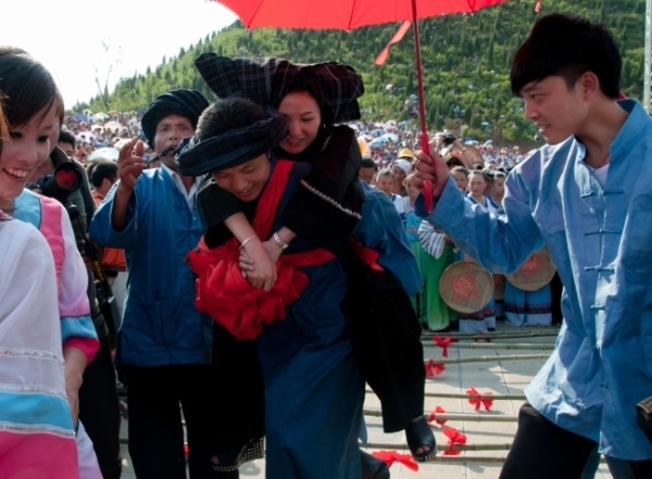 清朝陳鼎的"黔游記"中也有寫道:"跳月為婚者,立標於野,大會男女.男吹蘆笙於前,女振金鐸於後,盤旋跳舞,各有行列.謳歌互答.有洽於心即奔之.越月送歸母家,然後遣媒妁請聘價等."