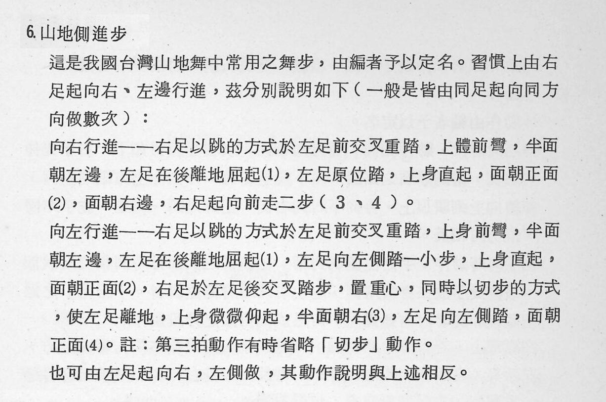 山地舞常用的山地側進步常常有人搞不清楚方向,其實山地側進步可以向左行進也能向右行進,以下是張慶三老師所著”土風舞之路”中對山地側進步的介紹.