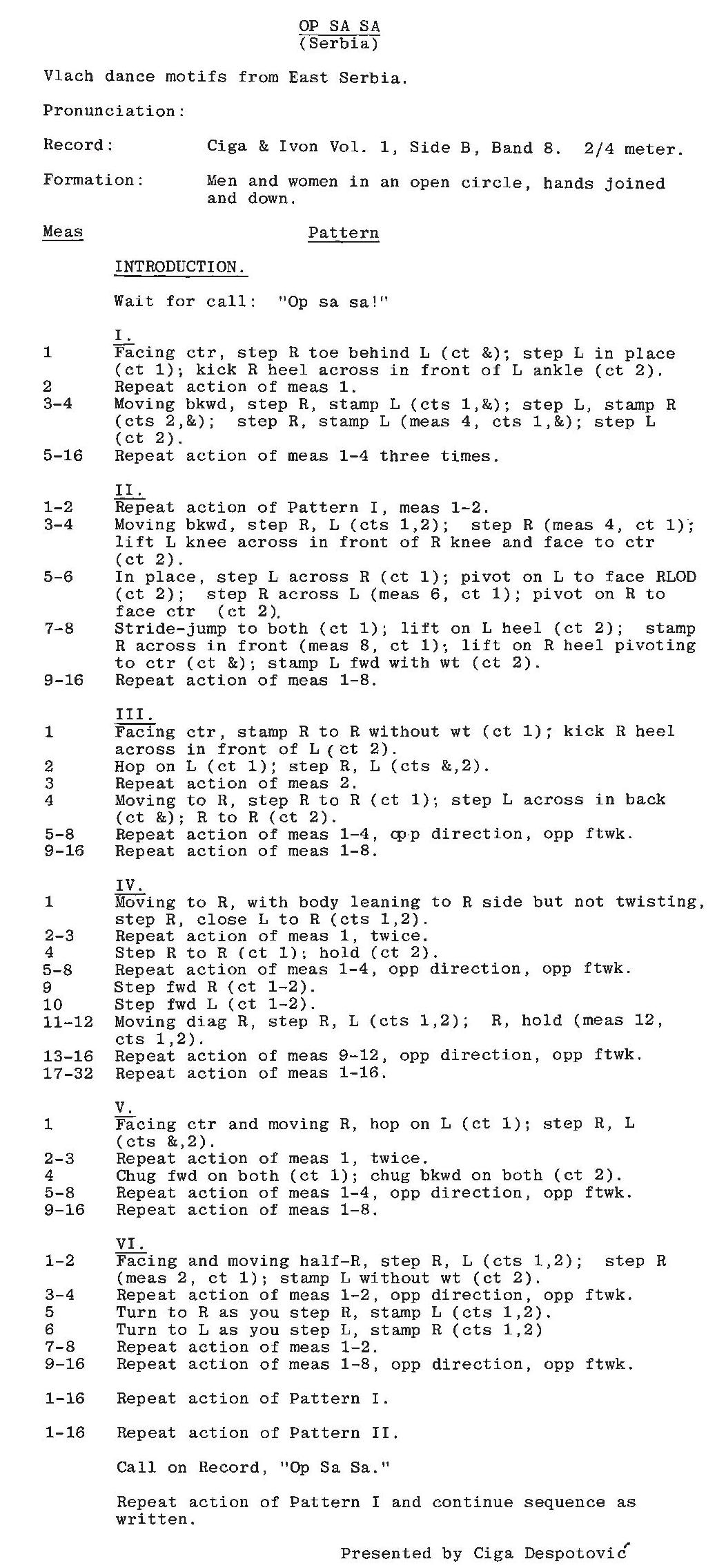 塞爾維亞,Shiptar,Vlach….等等,除了舞蹈之外,他也寫書,創立舞團,成立樂隊灌錄音樂,擴展他推廣舞蹈的範疇.Ciga老師於西元2002年5月因癌症去世,在他去世的前半年,也就是西元2001年12月的耶誕假期,他還帶領好多老舞友,包括以前舞團與友團和粉絲們,在貝爾格勒展開他人生中最後一次的學習之旅.雖然身體羸弱,幾乎無法說話,他仍認真的收集與紀錄.更令人動容的是在晚上的聯歡上,他甚至一度站起來跳他的成名舞之一的”Op Sa Sa”!