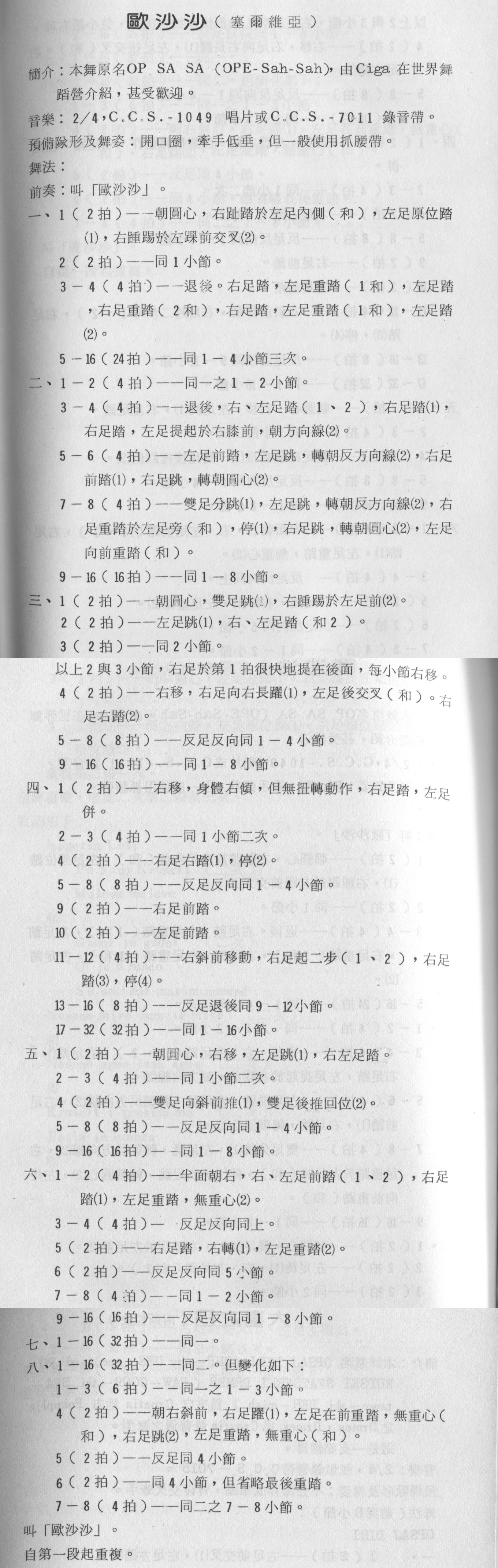 青蛙老師從善如流,最後的最後,貼出中文舞序,但是舞友們一看到預備舞姿就會崩潰了(其實青蛙老師在最上面的基本資料中就貼了,只是大家都沒有注意而已),學了幾十年的本舞,怎麼一開始預備舞姿是牽手都做錯了,大家猶如一盤散沙,大家自己跳自己的-昏倒!現在知道了吧?沒有所謂的”單人舞”這個名詞,OK?