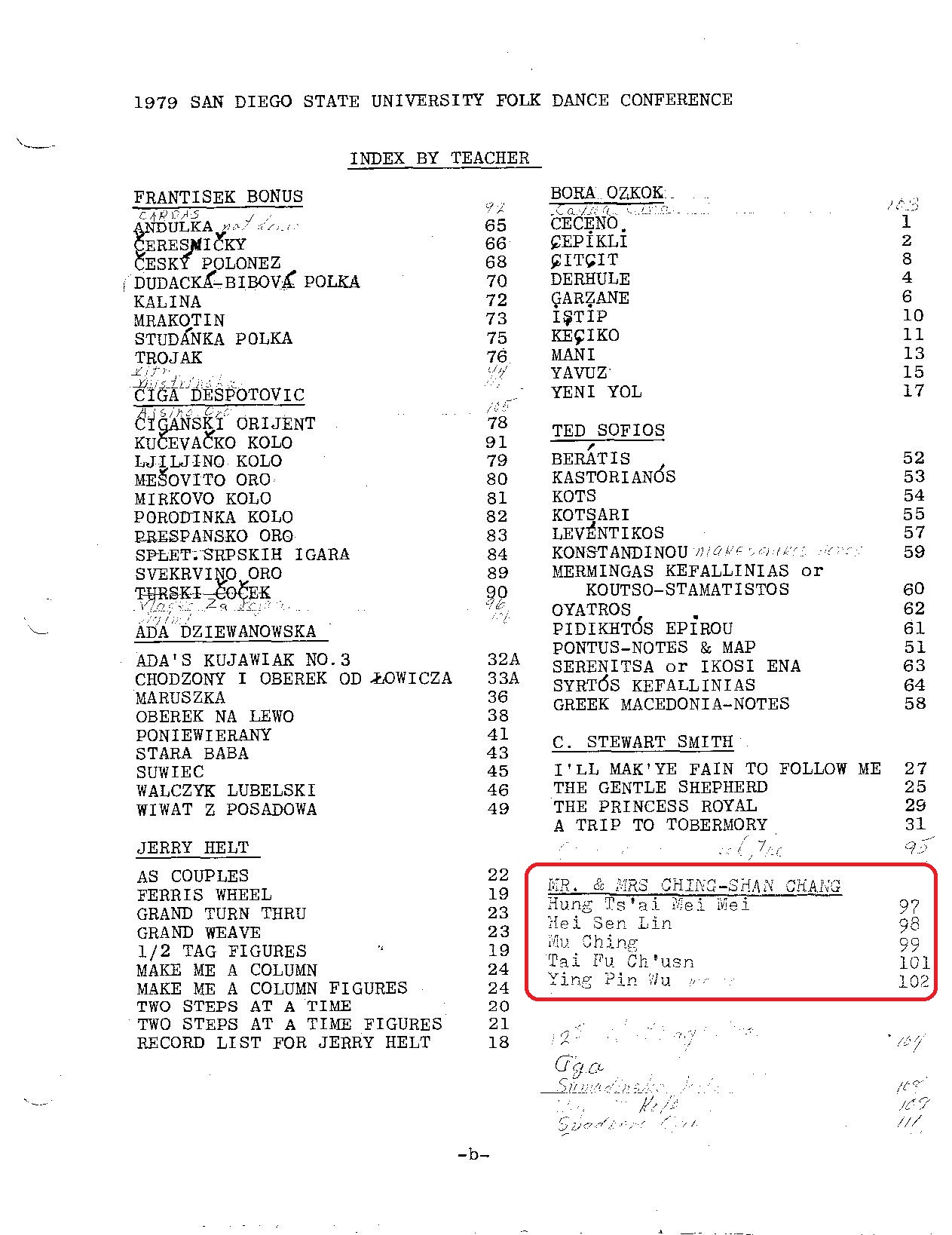 西元1979年美國聖地牙哥大學舞蹈營目錄中有張慶三老師與陳芳枝老師的教學舞碼:(都是英文舞名,看舞友們能認出幾首?呵呵~)