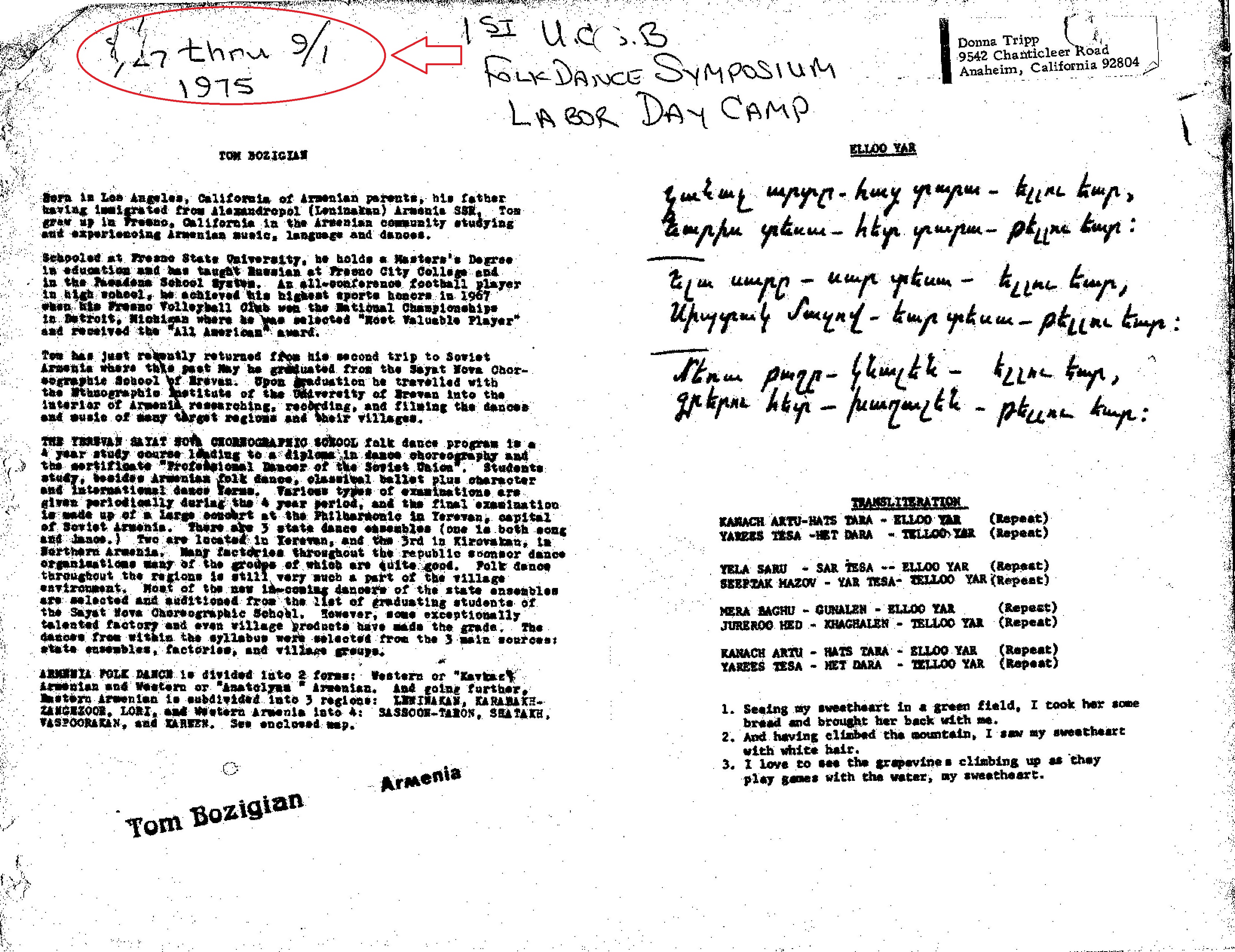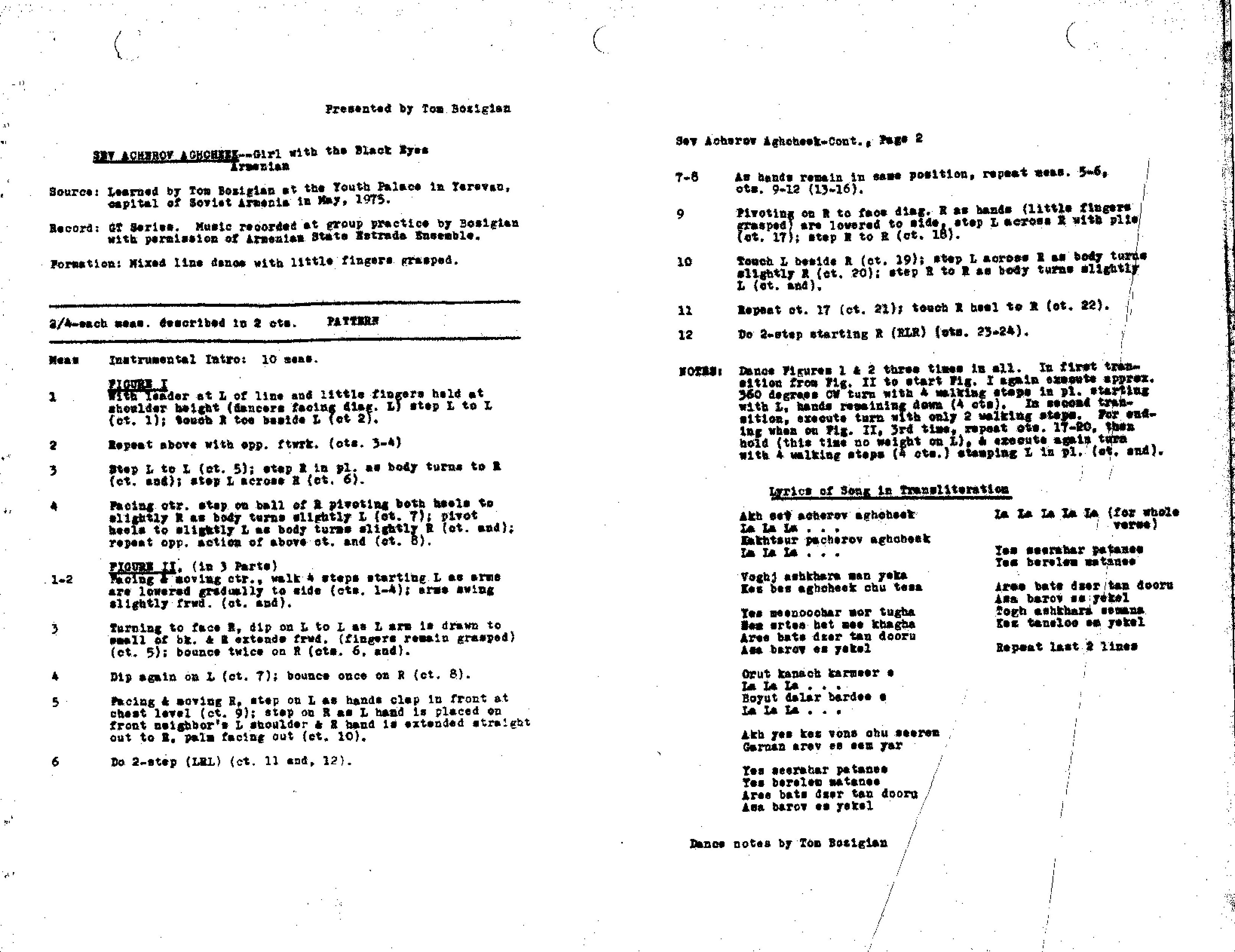 這首舞我大概是在民國67or68年左右學的,是一首相當受歡迎的亞美尼亞舞,歌好聽,舞也不算太艱難....但是有不對稱小節,動作也有變化,還算有一點點小小難.