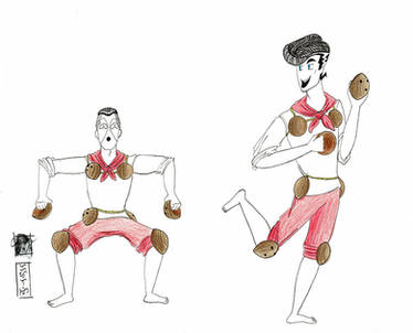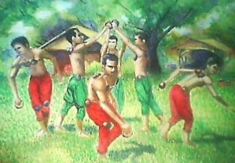 本舞的舞蹈編排不盡相同,唯舞蹈基本上分為4部份palipasan,baligtaran,這兩段是激烈的戰鬥;paseo,escaramusa這兩段則是和解,這是基本的軸線.男舞者在舞蹈中不斷的用手上的椰子殼拍打自己或者敵人身上的椰子殼,聲音清脆,節奏明快,是眼睛與耳朵同時享受到的舞蹈.