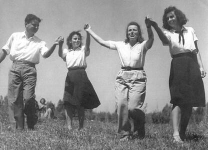 集體農場拓荒者們於農暇時分,圍成圓圈跳呼拉舞(Horah)