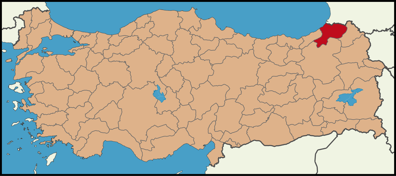 土耳其東北部的Artvin省位置圖:(紅色區塊)