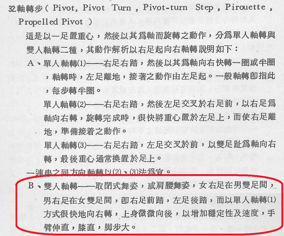 雙人軸轉,英文為Pivot turn.舞步解析如下:
