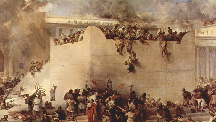 這是一次偉大的回歸,但猶太人的苦難並沒有就此結束.在隨後的幾個世紀裡,他們先後被希臘人,羅馬人統治.在羅馬帝國的高壓統治下,猶太人爆發了多次氣壯山河的大起義,但最終都遭到了血腥的鎮壓.公元七十年,羅馬軍隊再次攻陷耶路撒冷,將第二聖殿付之一炬,只留下了一段殘垣斷壁,這就是今天著名的西牆或者叫哭牆.公元一百三十五年,在鎮壓了最後一次大規模起義後,羅馬皇帝下令將所有的猶太人驅逐出耶路撒冷,並且把這片土地的名字改為巴勒斯坦,意圖徹底抹去猶太人存在過的痕跡.從此,猶太民族開始了漫長而痛苦的大流散時期,也就是史稱的散居時代.