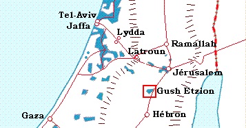 Gush Etzion地圖,請注意,它的南邊 Hebron,就是本舞名稱的來源: