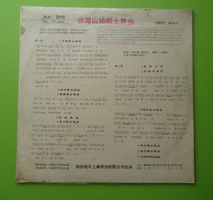 土風舞音樂:鈴鈴唱片RR-6056台灣山地豐收舞曲專輯