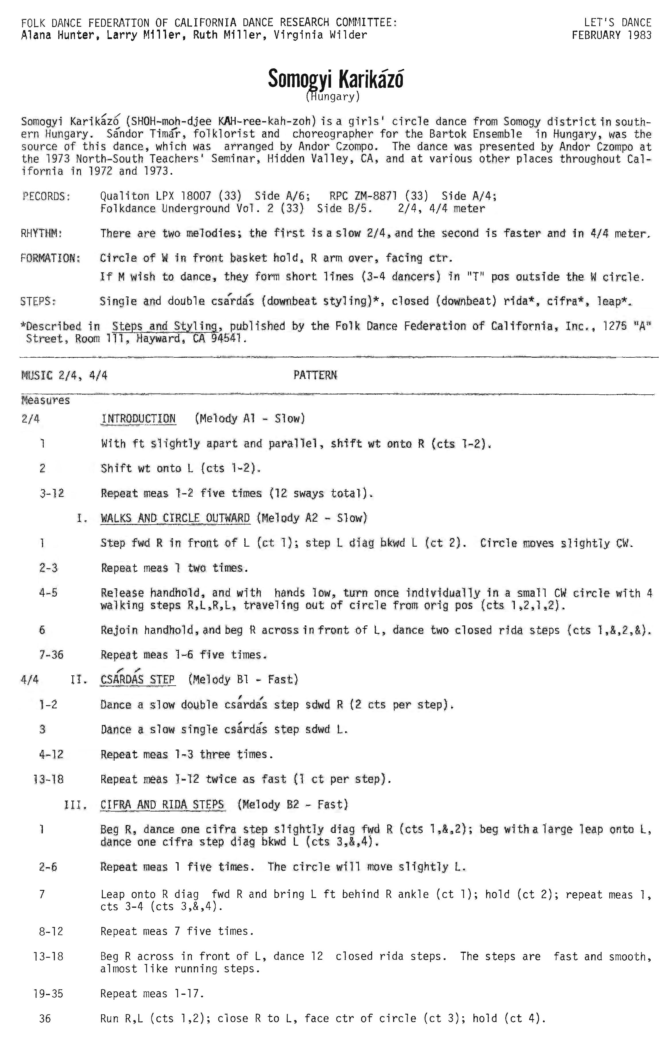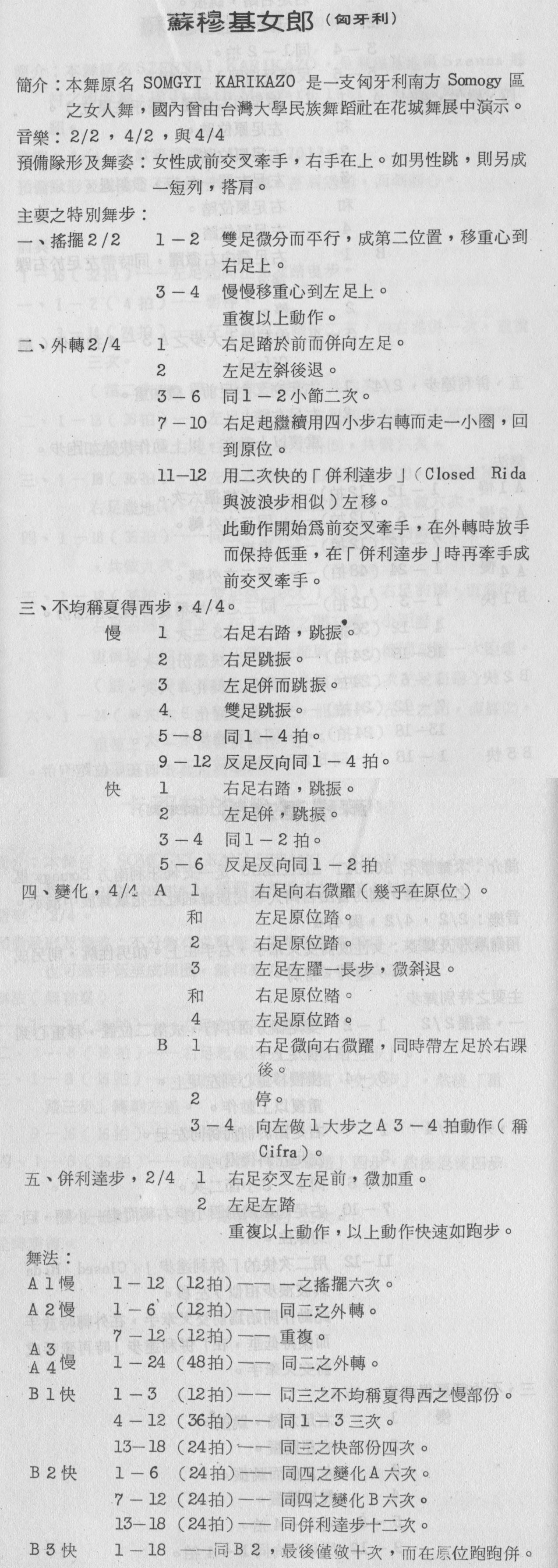 本舞舞名Somogyi Karikázó,第一個字Somogyi比Somogy多一個”i”,意思是”蘇穆基的”.舞名的意思就很清楚的說這首舞是來自蘇穆基的”Karikázó”.那接下來我們就要知道"Karikázó"是什麼啦.