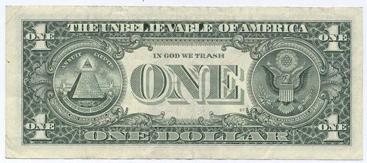 在經濟衰敗的地區如美國, 錢是政客的玩物, 絲毫不存在一點可被尊重的價值, 破產的信用, 剩下的是一堆紙所堆出來的:"Trust" 但是這褻瀆人與人之間價值鍊的最後之惡, 一種不可信任的東西, 尤其是指美元~ (一個絕對不美麗的貨幣)