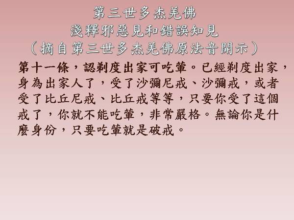 第三世多杰羌佛 淺釋邪惡見和錯誤知見--錯誤知見--第十一條,認剃度出家可吃葷