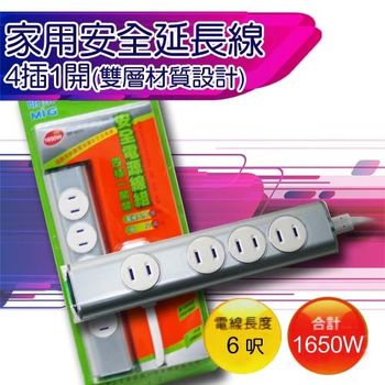 6呎家用安全延長線4插1開-(雙層材質設計)SP-4271-6CP值超高