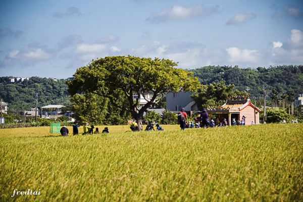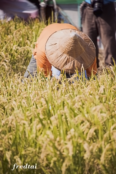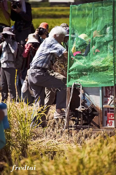 只是今天來看熱鬧的人比割稻的人還要多很多,