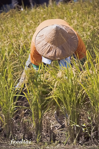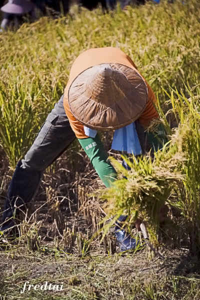 手工割稻,