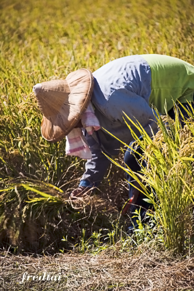 男人負責割稻,