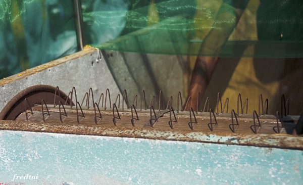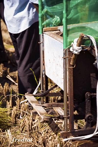 是用腳踩的,把稻谷從稻禾分離出來。