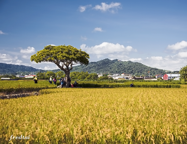 大家都是坐在田垠上或是涼爽的大樹下,