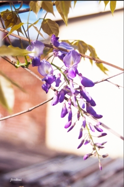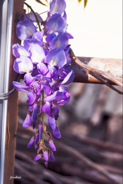 今年不用跑遠,菜園側的紫藤也開花了。