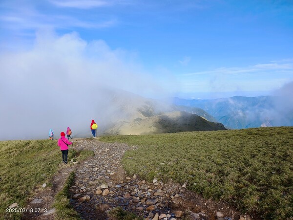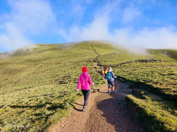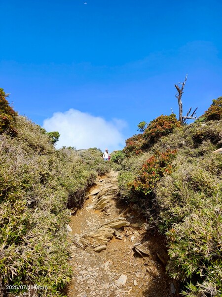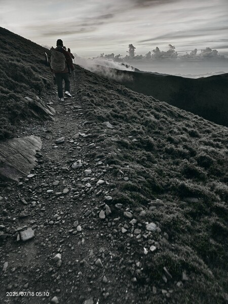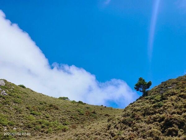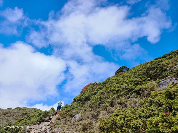 話雖如此,可是走在陡升段,明顯感受到自己的呼吸聲有點大,不免自我懷疑:平常爬山都不會這樣,好像很遜耶!.....直到與同行夥伴提及,她說除了領隊外每個人都嘛會喘,隨即釋然:對齁,我是在高海拔地方爬坡,有點喘很正常呀!