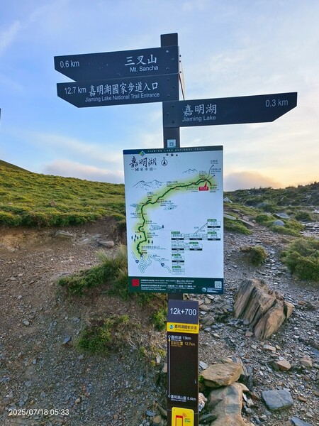 第三日行程是此行重點,兩點起床、三點起登,頂著頭燈向嘉明湖前進,GO、GO 、GO !慶幸的是前往13K嘉明湖只需攻頂包,心裡壓力減輕不少。
