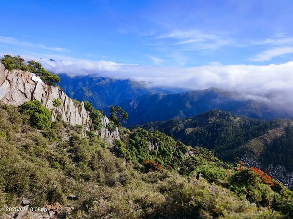 旋即,行經幅員遼闊的玉山箭竹草原,遠眺連綿不斷的台灣冷杉林,陡升600公尺,越接近山頂,遍地石塊岩片,難度更高!終於登上海拔3,496公尺的百岳三叉山。登高望遠,擁有360度的壯闊視野,飽覽秀姑巒山、向陽山、玉山群峰等名山,美景盡收眼底;山系間雲海變化莫測,彷彿在眼前。