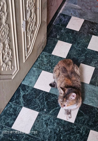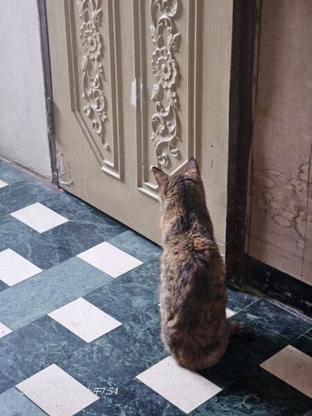 晨間,媽媽未起床時,牠會蹲在房門口,彷彿一隻忠心耿耿的貓護衛。