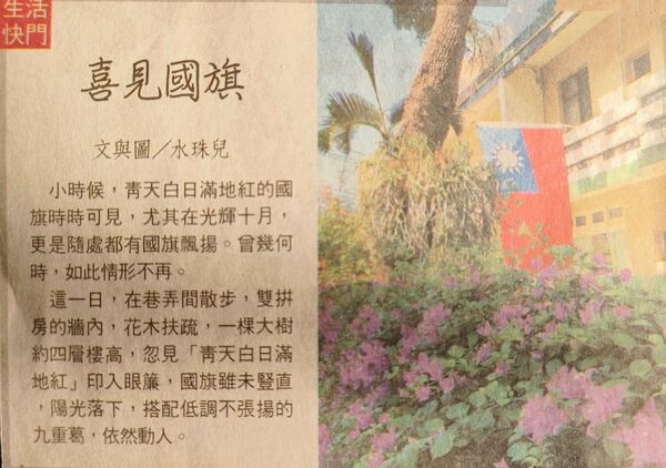 小時候,青天白日滿地紅的國旗時時可見,尤其在光輝十月,更是隨處都有國旗飄揚。曾幾何時,如此情形不再。