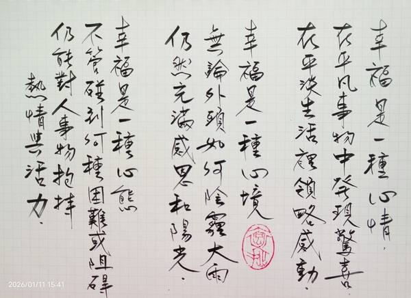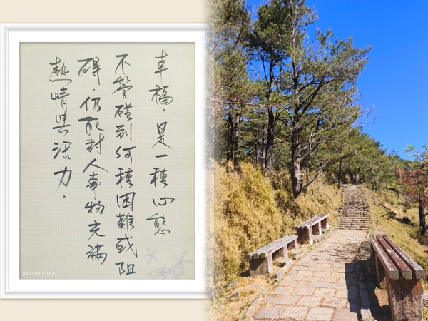 幸福,是一種心態,不管碰到何種困難或阻礙,仍能對人事物抱持熱情與活力。