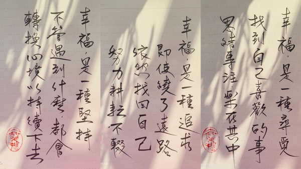 幸福,是一種追求,即使繞了遠路依然找回自己,努力耕耘不輟。