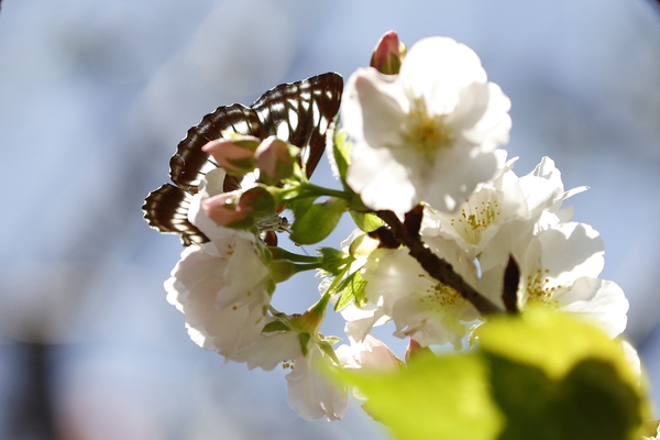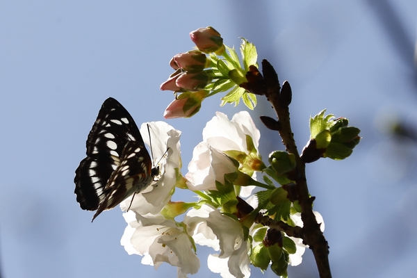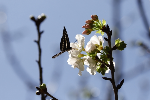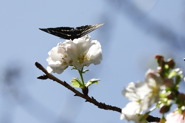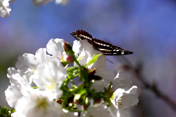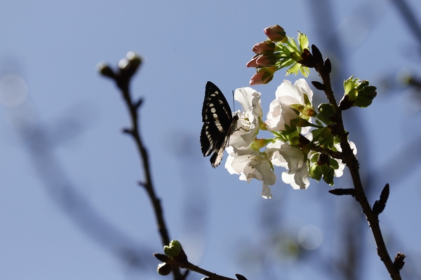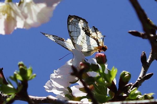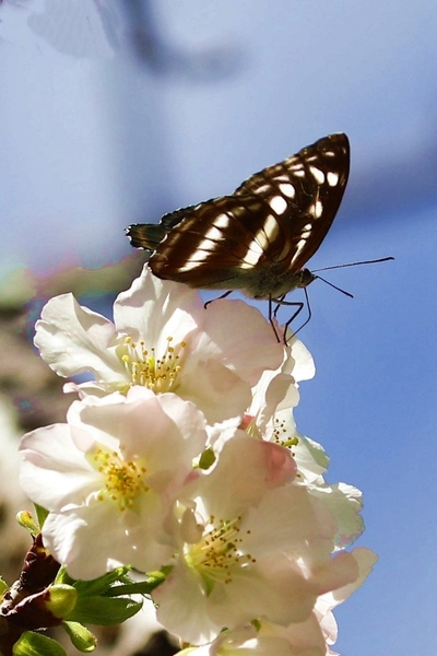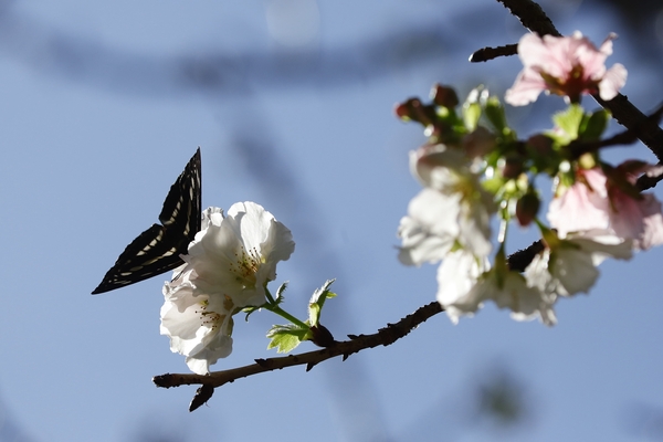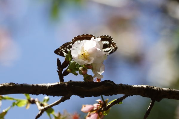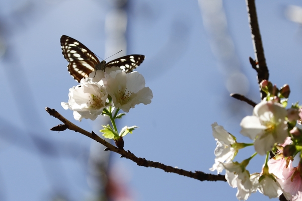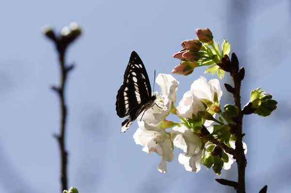 櫻花樹下又與石牆蝶不期而遇,