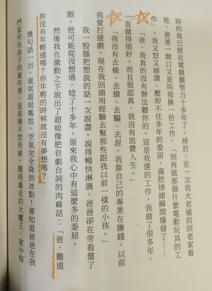 🌱書中清楚描繪Vocal小時候是家人眼中抱著電視不放的電動兒童,一顆心隨著電玩起起落落,甚至為了要能夠好好打電動,小學每天放學回家總是拚全力寫完功課,然後就坐定在電視機前打任天堂。國高中時期,因課業繁重壓力巨大,不得不短暫告別電動世界;直到讀大學獨自寄宿在外,才享受到自由滋味。