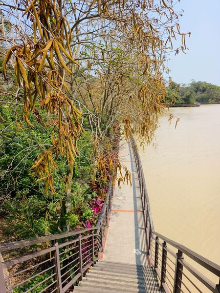 如今不喜湊熱鬧的我,今年花開時,並未前往峨眉湖。卻在一個月後,因緣際會造訪,惟湖面因連續雨勢肆虐尚未恢復原貌,呈現了不同以往的景致。