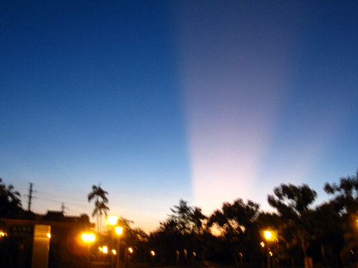 夕陽下山前,先是在東方有大片投射狀的雲,