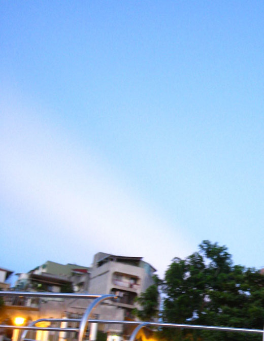 接近黃昏的天空不是藍色,但還是莫名地覺得好幸福吶。該說是,澄黃的雲朵把橘色的天空襯托得好溫柔──我喜歡那種溫柔到快要被融化的感覺,不論就哪方面來說。
