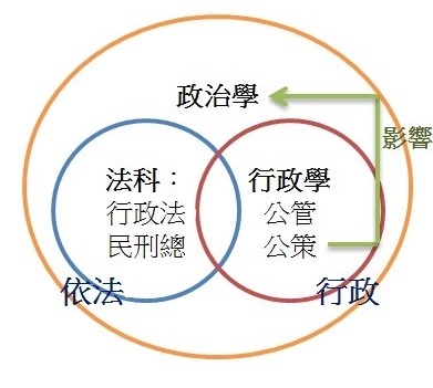行政學:研究政府如何有效運作的一套知識體系,包括了組織結構、人、管理方法、環境等。