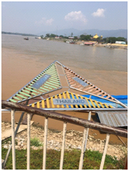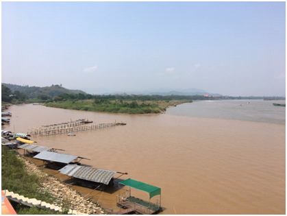 (湄公河與支流交會處。照片左方是泰國、中間屬於緬甸,右方則是寮國領土)