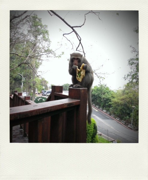 台灣獼猴大啖倒楣遊客的九層塔蛋餅